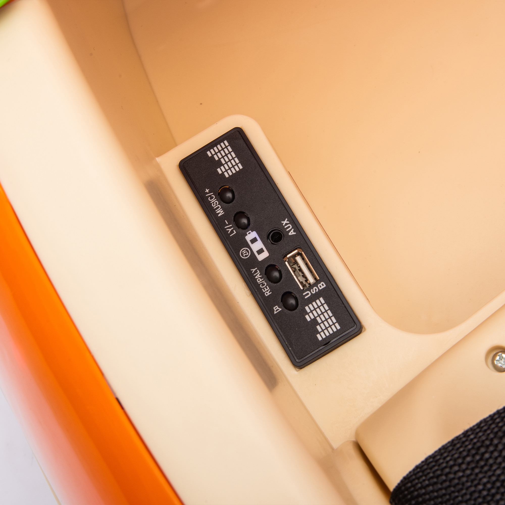 - This children's electric ride-on car features Bluetooth 2.4G for seamless wireless connection with smartphones, while also including a built-in MP3 player preloaded with music for instant play . The thoughtful adjustable volume control allows parents to set comfortable sound levels according to their child's hearing sensitivity, ensuring both auditory protection and joyful entertainment.