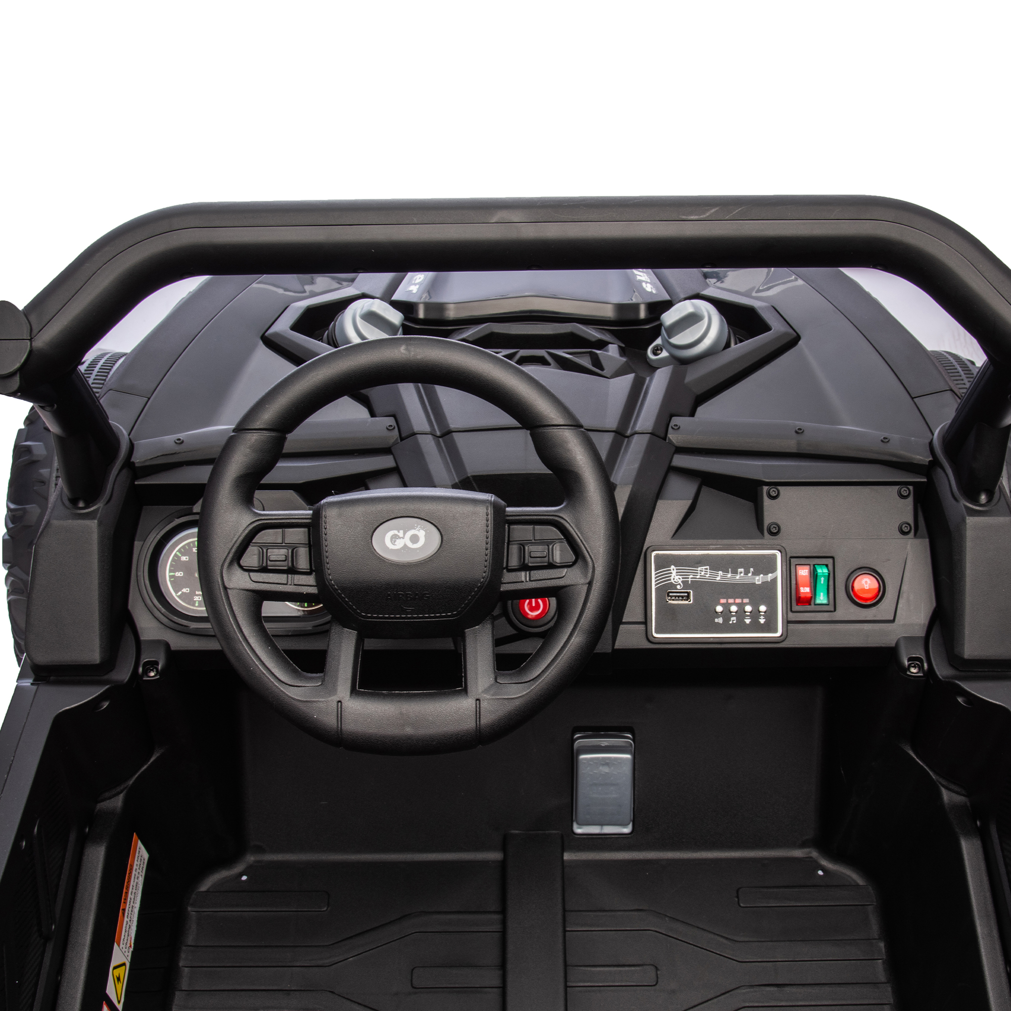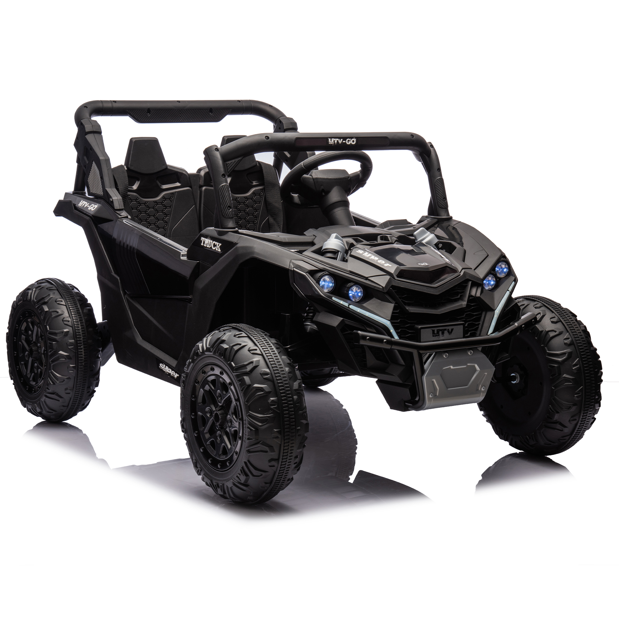 Product Name:24V Two-Seater Kids Ride On UTV W/Parents Remote Control,Four-Wheel Suspension,Slow Start,Large wheel design,Anti-collision bar,Storage space,Music,USB,Bluetooth,Volume control,LED lights for Kids 3+.