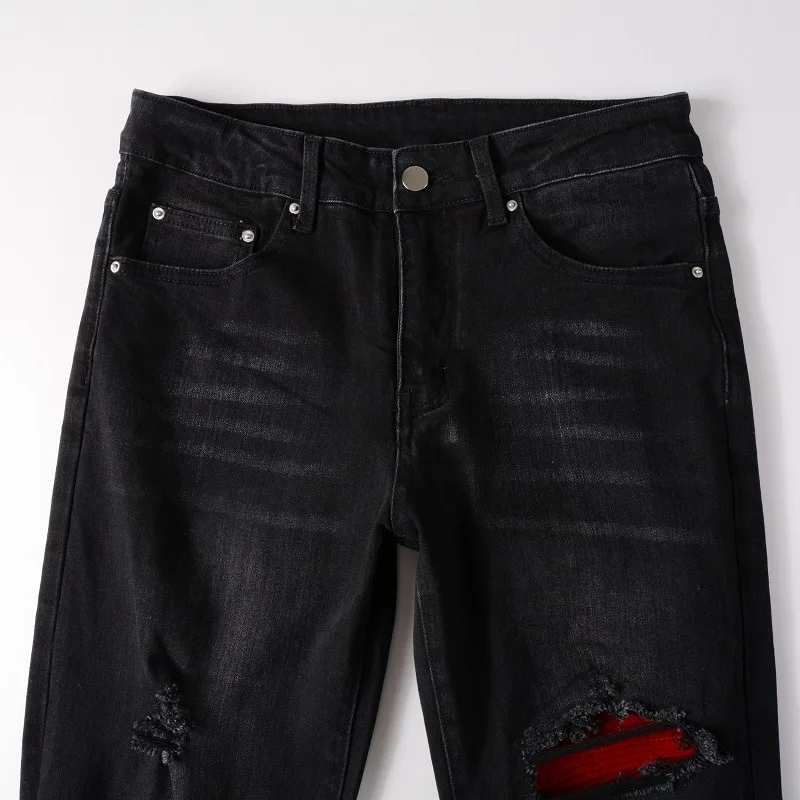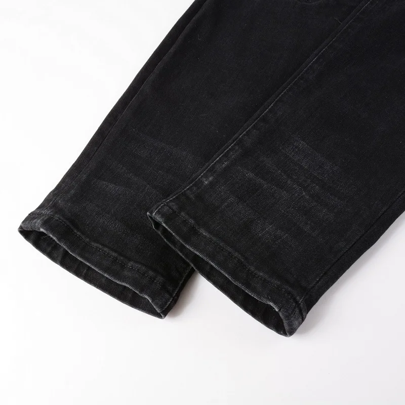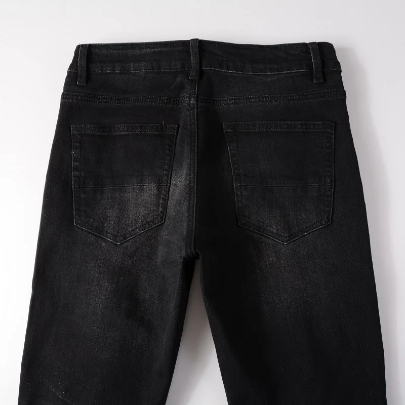 European And American Street Style Fashion High Quality Men Wash Faded With Whisker Jeans Denim Skinny Rip Patch Designer Jeans