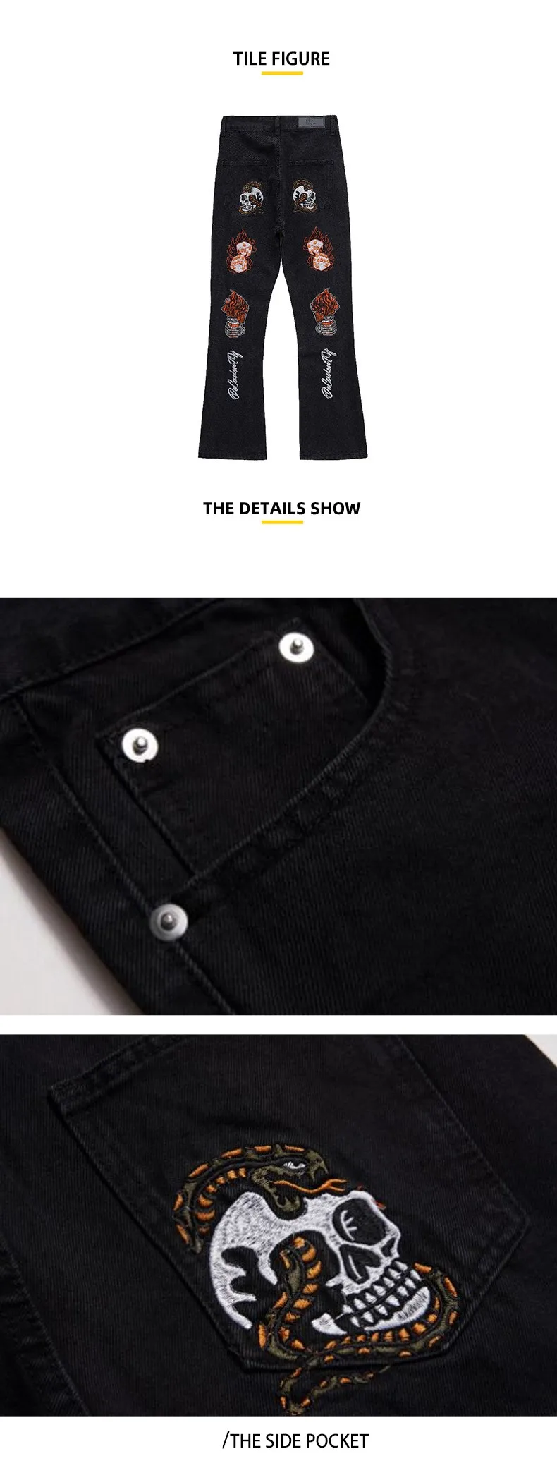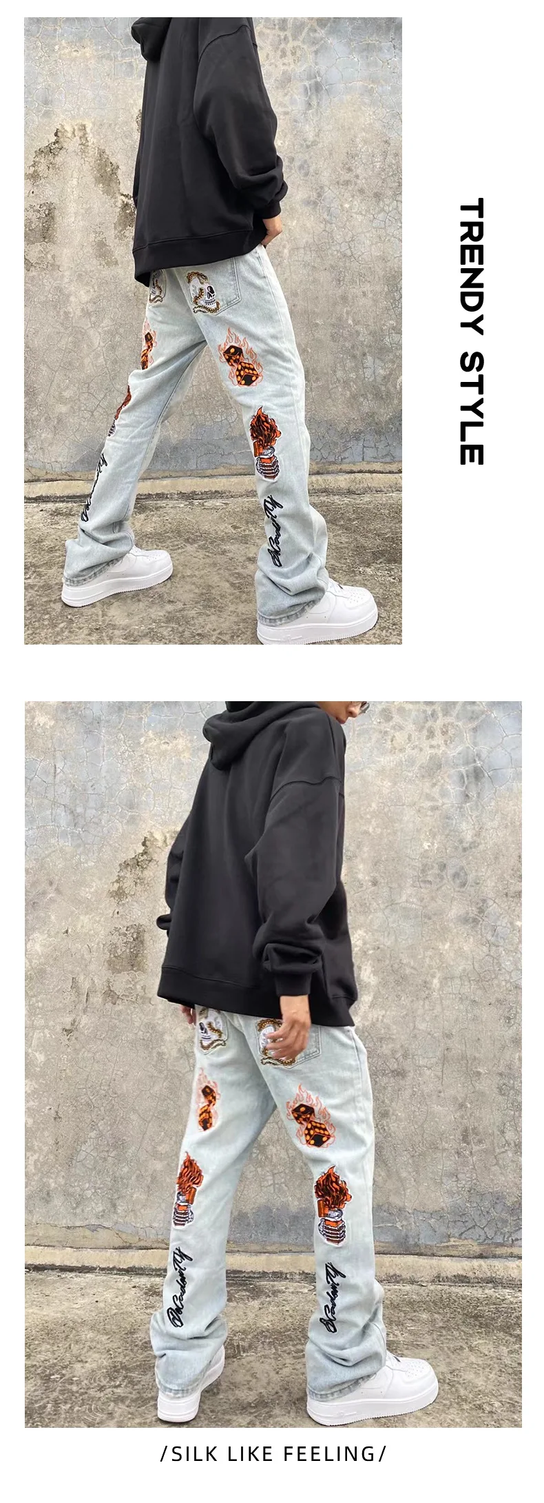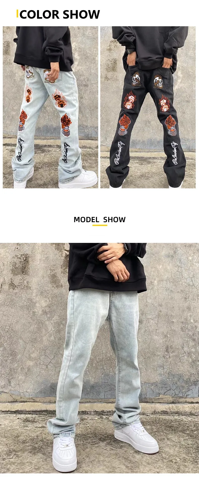 European Hip-Hop Street Wide Leg Stacked Entrepreneurs Customize Embroidery LOGO Jeans Men Wash Fashion Designer Flare Jeans