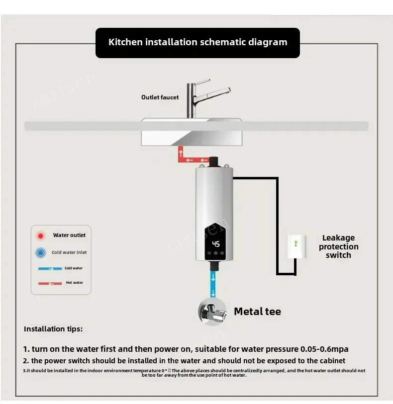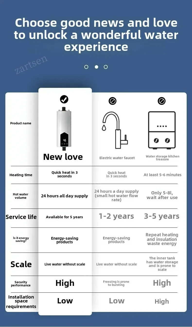 Instant Water Heater 220V 3000W-5500W Portable Electric Heaters for Bathroom Hot Water Shower and Home Kitchen Heating